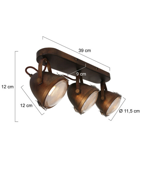 Con la lámpara de techo de 3 luces Mexlite Dublin, atraerás muchas miradas. Tiene un color marrón oxidado que le da a tu interior un toque vintage. Esto inmediatamente crea un ambiente acogedor en tu hogar, pero no es el único punto a favor de esta lámpara. Está diseñada para proporcionar más que suficiente luz en una habitación, y además en tres direcciones. Por lo tanto, la lámpara de techo industrial es perfecta para colgar en la cocina, donde necesitas suficiente luz. Además, esta lámpara cuenta con una función de atenuación a calidez. Con la función de atenuación a calidez, puedes reducir la luz de un blanco brillante a una luz cálida y acogedora. Esta función se activa conectando la lámpara a un regulador de luz externo.