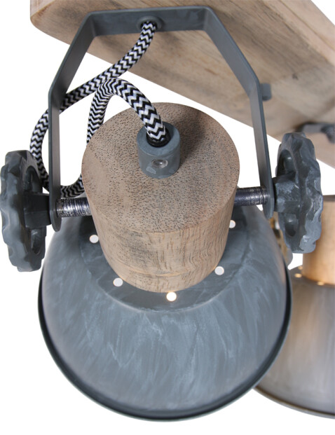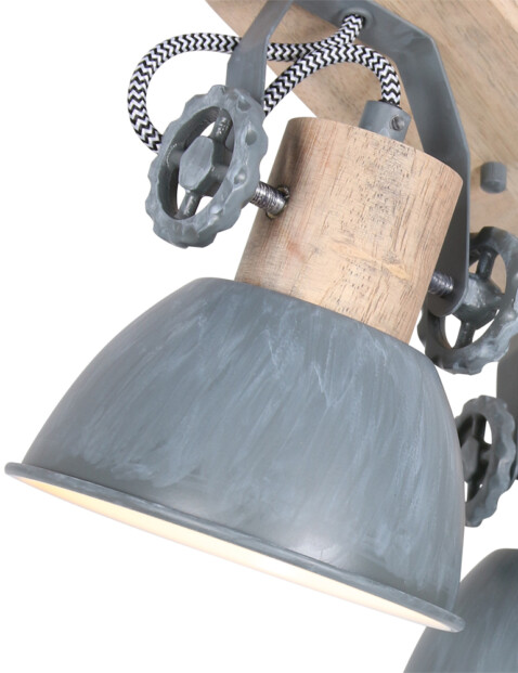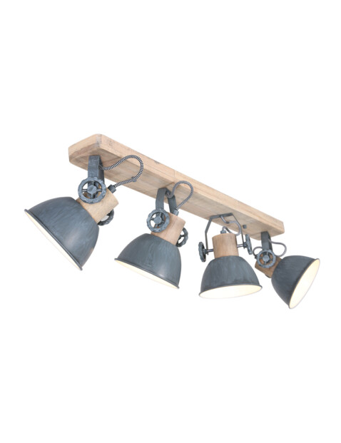 El foco de techo Gearwood de 4 luces de Mexlite combina un diseño robusto con flexibilidad. Los cuatro focos son giratorios e inclinables gracias a las ruedas ajustables y tienen un casquillo E27, adecuado para fuentes de luz de hasta 40 vatios. La longitud total del foco es de 90 cm y las pantallas tienen un diámetro de 15 cm. Regulable con un regulador externo y una fuente de luz adecuada.