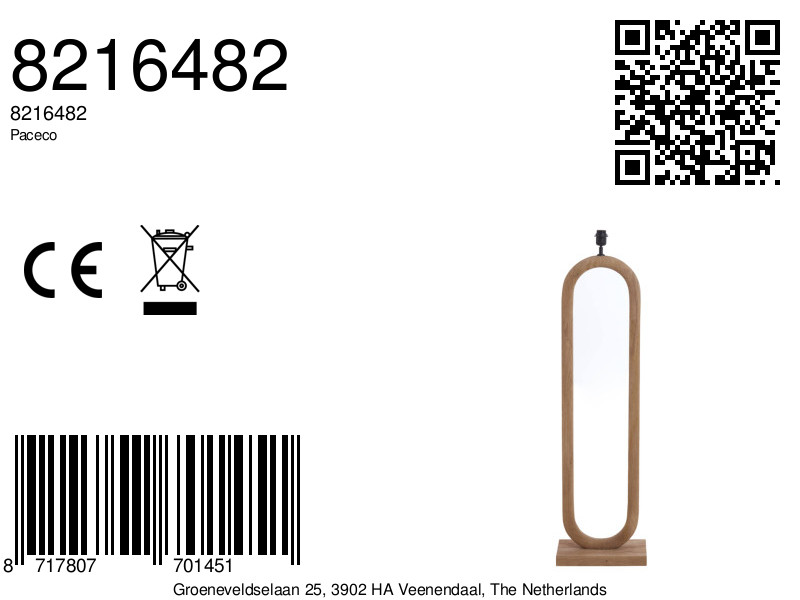 Soporte de lámpara de madera ovalado Light & Living Paceco