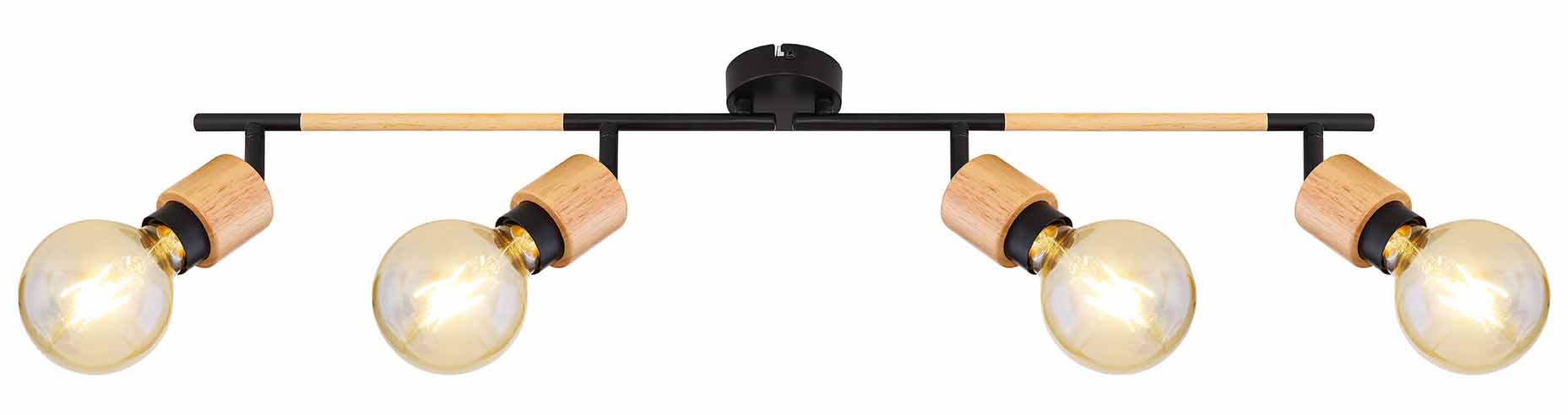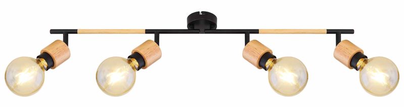 Descubre la extraordinaria mezcla de estética y funcionalidad en el spot de techo Jorna. Con su combinación única de madera y metal negro mate, esta lámpara alargada de 80 cm ilumina uniformemente cualquier espacio, siendo ideal para su colocación sobre una mesa. El diseño permite el uso de cuatro bombillas E27, brindándote la posibilidad de seleccionar el tono y la intensidad de luz deseada. Completa tu interior con esta pieza maravillosa y otros artículos de la colección Jorna para una atmósfera armoniosa y elegante.