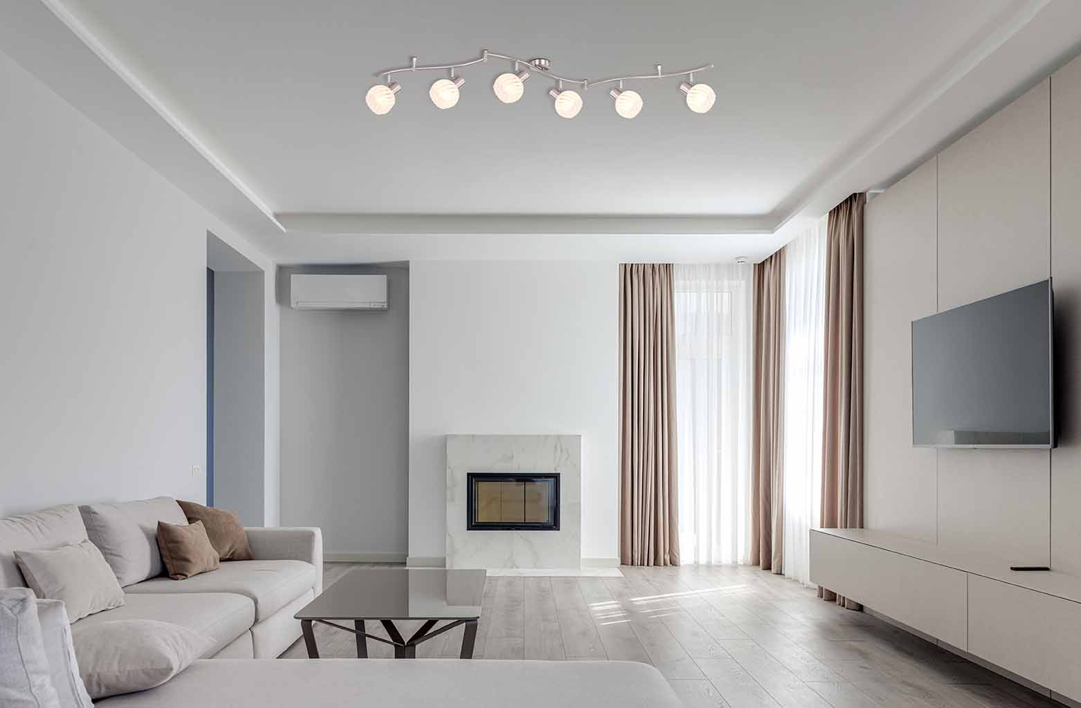 Spot alargado de 6 luces de níquel con esferas de vidrio Globo Willy