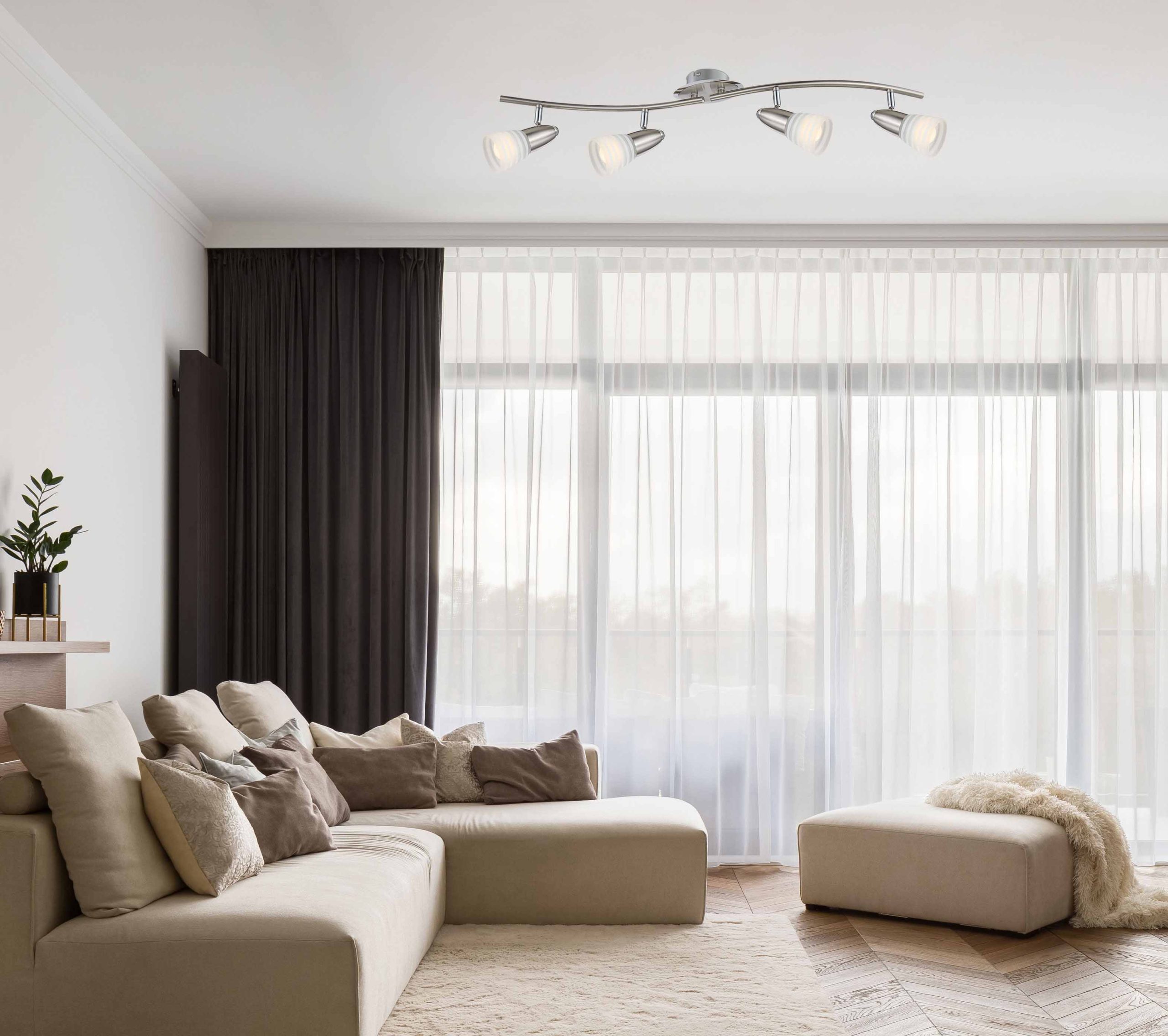 Este versátil foco de luz es ideal para diversas aplicaciones, ya sea que lo uses en tu cocina, pasillo o sala de estar. Con una impresionante longitud de 80 cm, ofrece una solución de iluminación flexible y atractiva que se distingue por su acabado en níquel mate y componentes cromados, complementados con vidrio opalino satinada. Gracias a los focos móviles que emiten 1600 lúmenes potentes y una luz blanca cálida de 3000K, lograrás la iluminación perfecta en cualquier espacio.