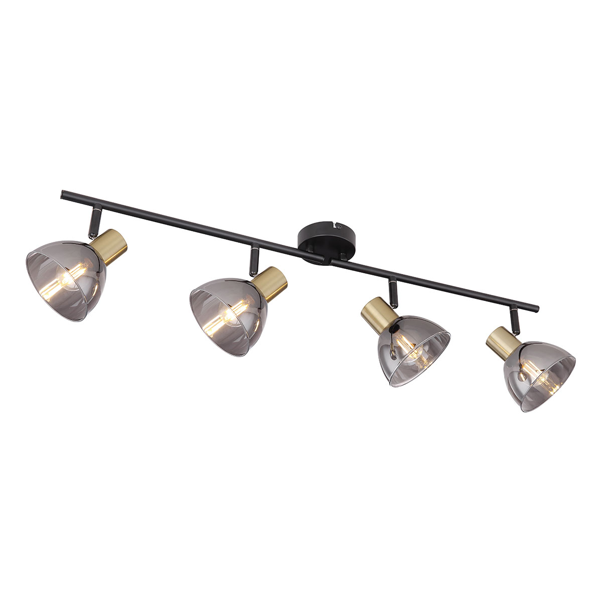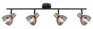 Descubre el refinado encanto de este foco negro, compuesto por una variedad de materiales bellamente trabajados. El montaje en el techo está forjado en sólido metal negro, soportado por un riel en forma de E al que se le han fijado tres portalámparas E14, cubiertos con capas en acabado de latón mate. Los elementos de vidrio ahumado (Ø 25 cm) son un complemento elegante para este accesorio de iluminación. La elección de las bombillas (3x E14/máx. 25W) ofrece la posibilidad de ajustar la intensidad y el color de la luz a tu interior. Considera las bombillas LED por su sostenibilidad y eficiencia energética. Puedes continuar con este estilo en tu interior con otros modelos de la misma serie.