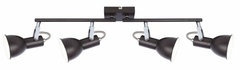Spot industrial de 4 luces con capucha de linterna marrón/cromo Globo Fargo